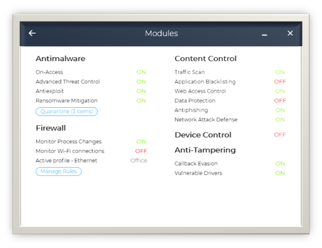 - Your home screen actively protects your PC and reports on issues with the actions needed to take (update, scan, etc.) for a remedy.
